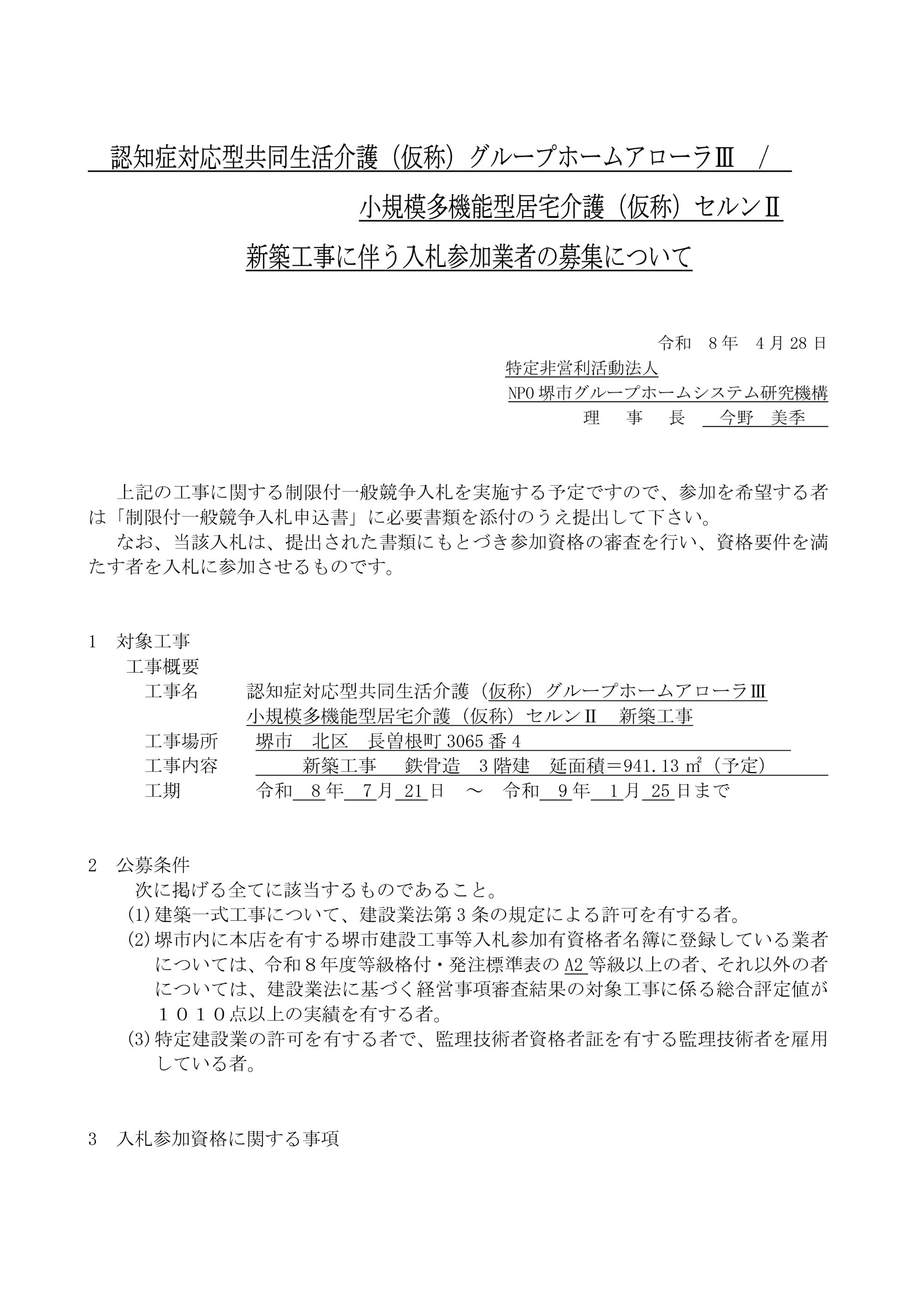 | 施設名 | 特定非営利活動法人NPO堺市グループホームシステム研究機構 |